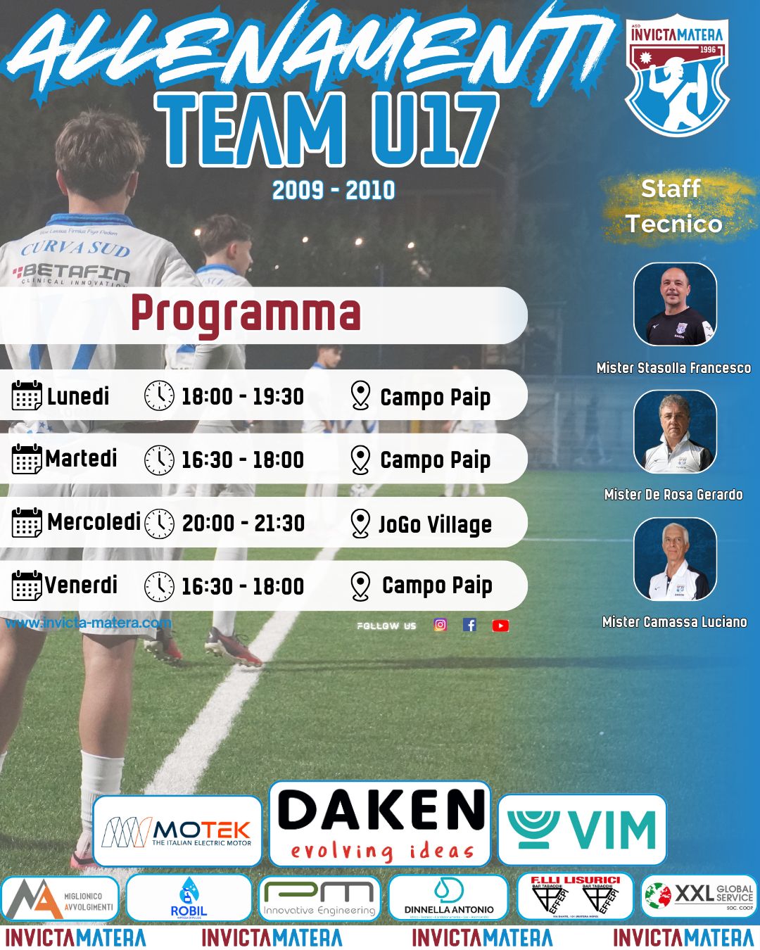 Affiliata al C.O.N.I. e alla Federazione Italiana Gioco Calcio, l’ A.S.D. INVICTA MATERA vanta all’interno dello staff tecnici qualificati pronti a mettere la loro esperienza a servizio dei più giovani.